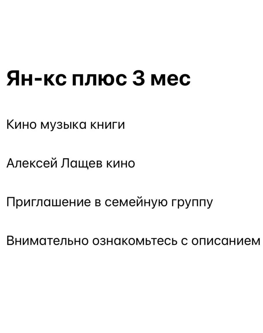 4. При наличие у Вас действующей подписки Ян-кс Плюс, она приостанавливается на время действия семейной подписки и возобновляется при ее окончании.