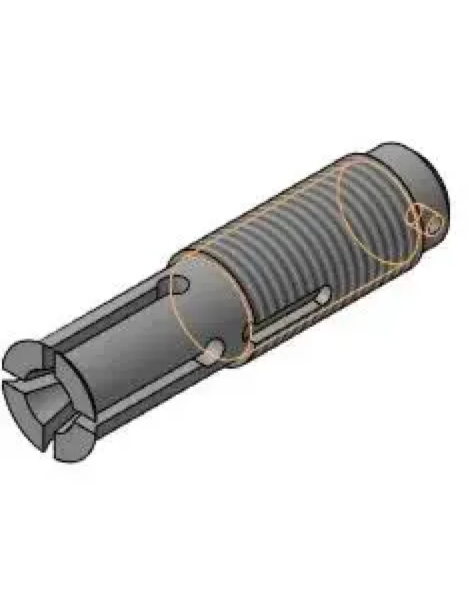 Рабочий чертеж и 3D модель детали цанга 11.002 из сборки 11.000 съемник из альбома по деталированию Аксарина. Чертеж выполнен в AutoCAD, модель выполнена в Компас 3D