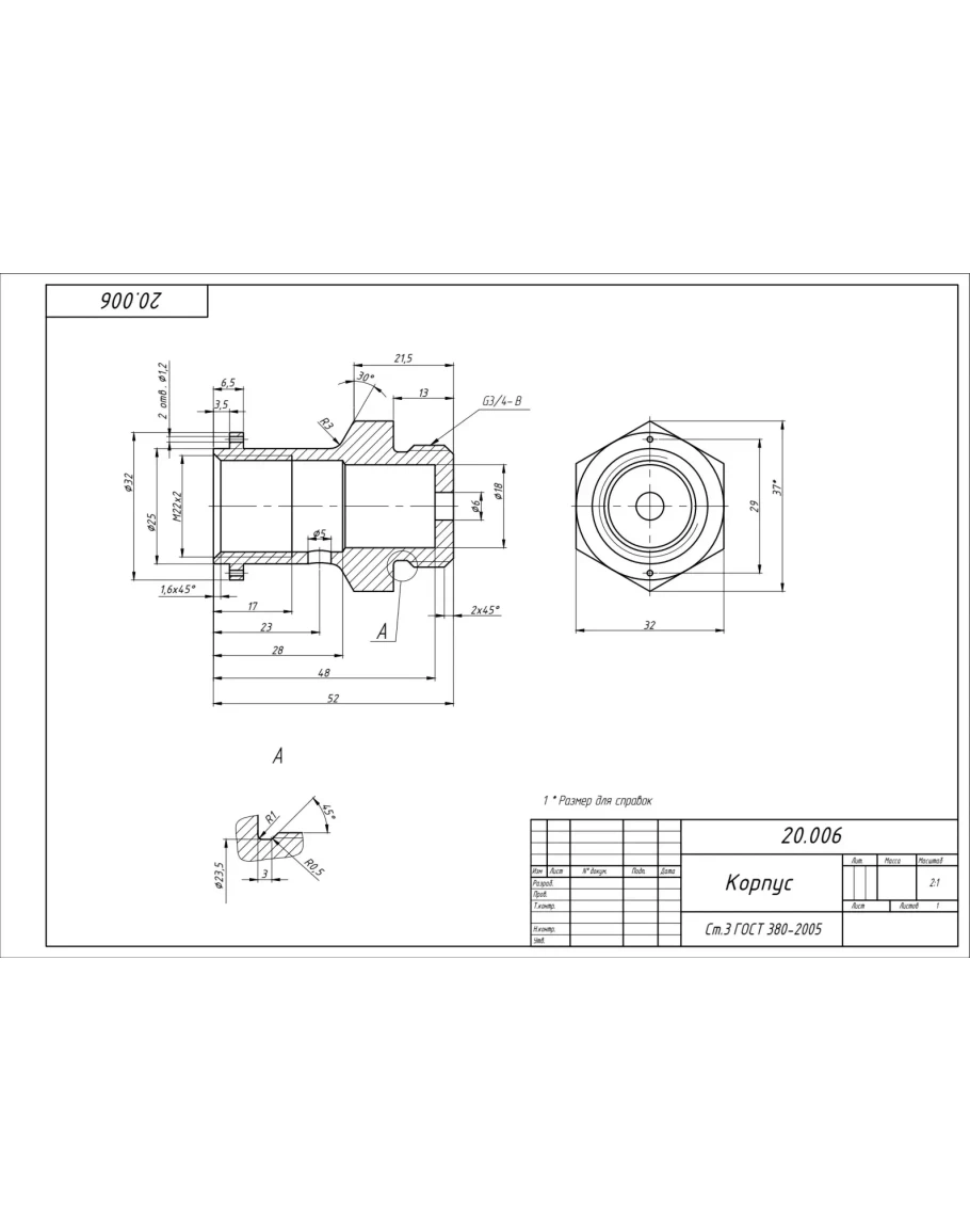 20.006 корпус. Рабочий чертеж детали в AutoCAD