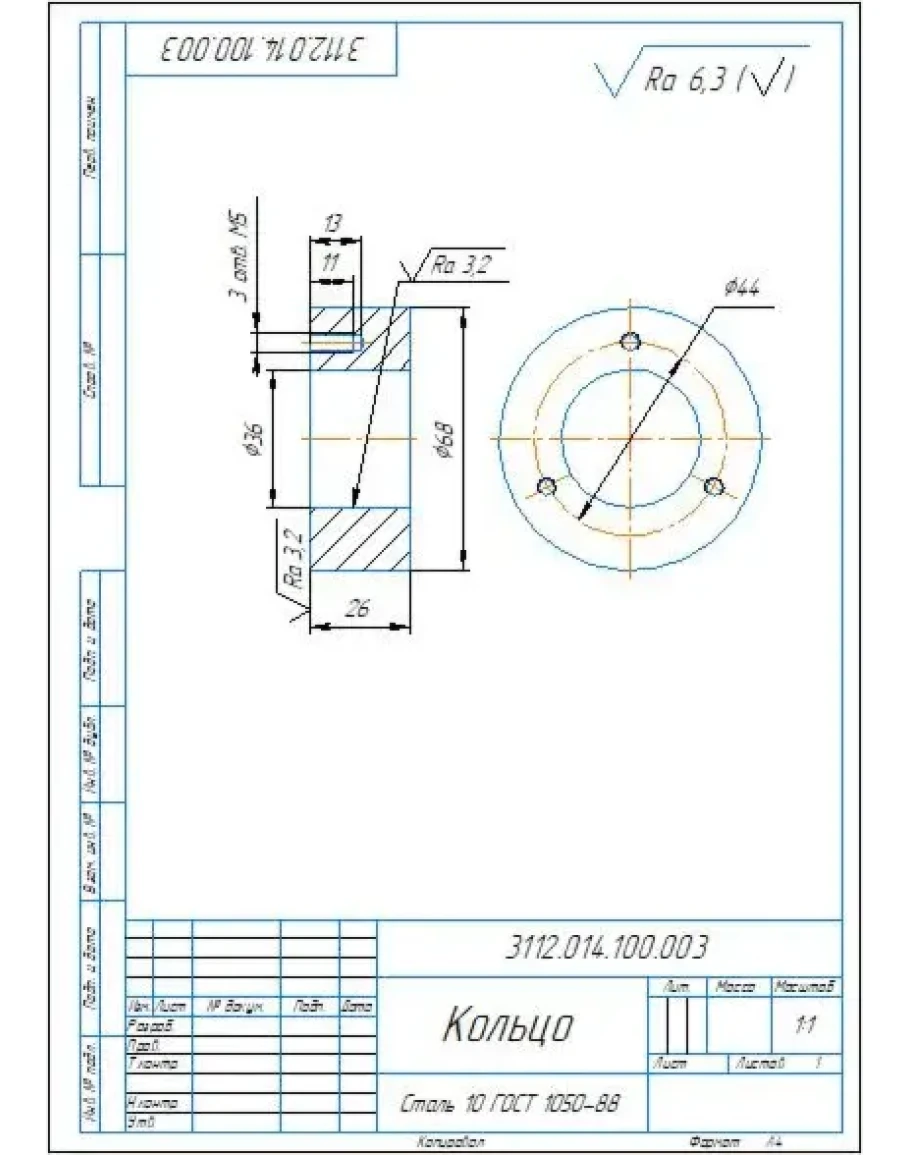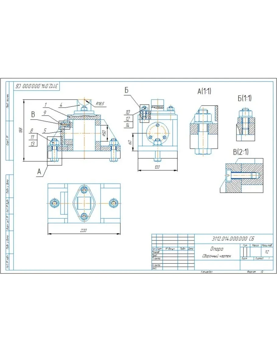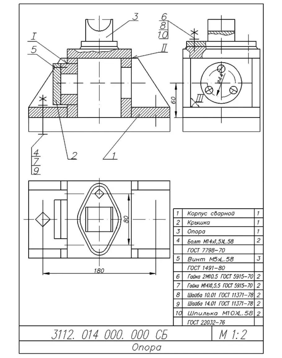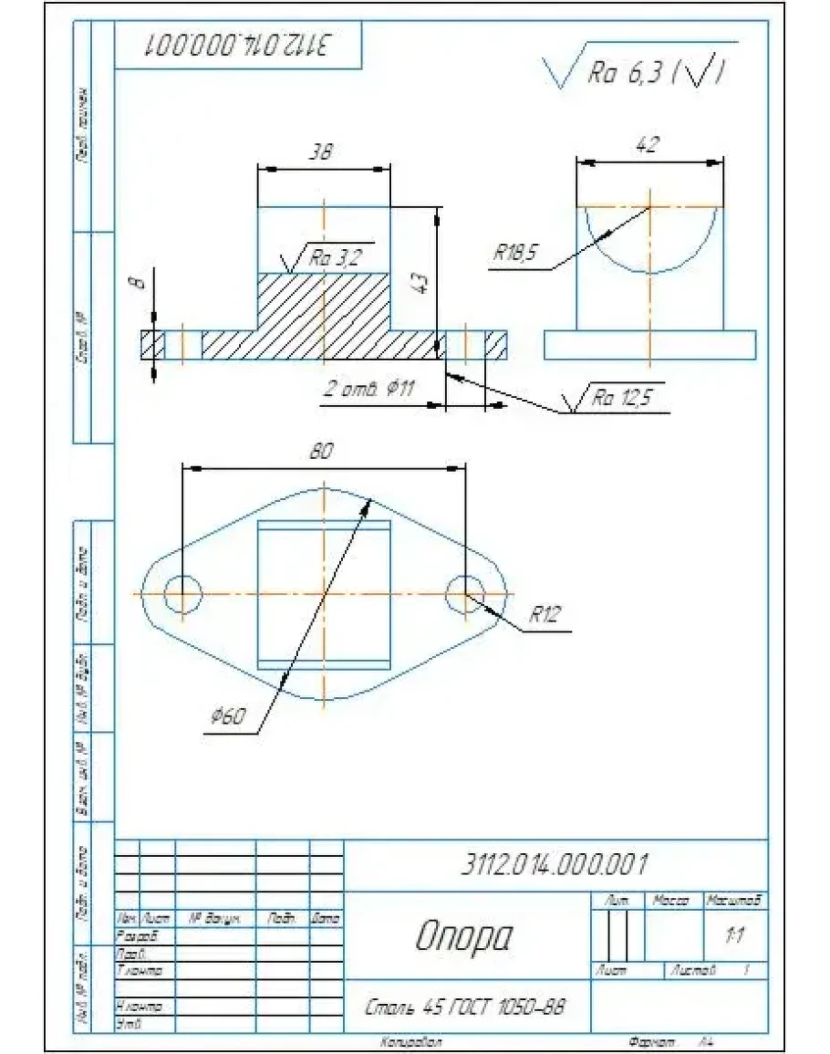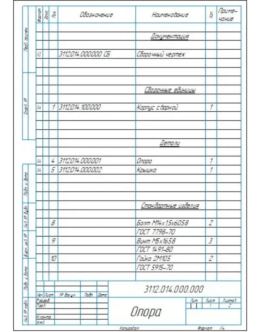 Комплект конструкторской документации: чертежи и пояснительная записка (расчет соединений) на изделие опора 3112. 014 000. 000 в программе Компас 3D