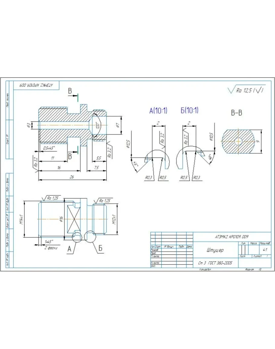 АТЭМК2. КР0109. 009 штуцер - Чертеж детали
