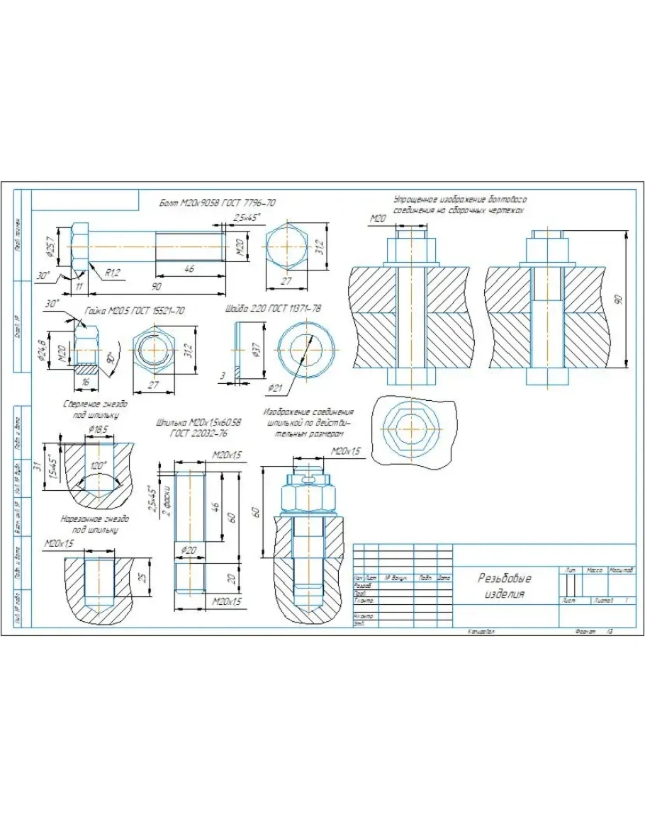 Чертеж болтового, шпилечного соединения М20