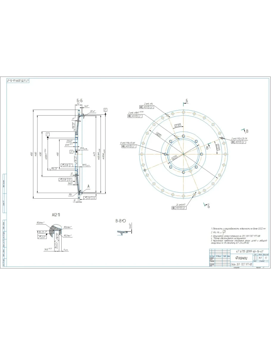 Чертеж детали фланец 47 6715 0099 46-14-41 в компасе