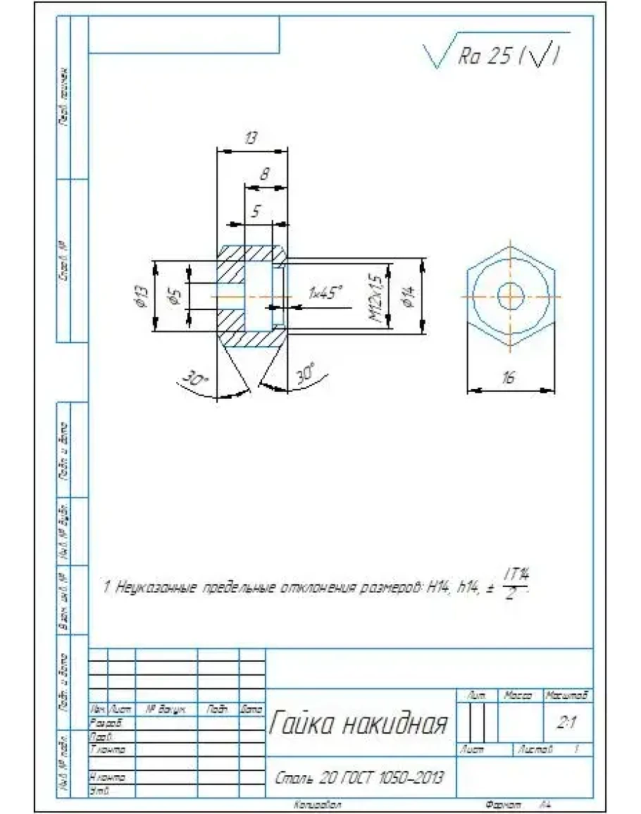 Рабочий чертеж детали гайка накидная, выполненный в программе компас