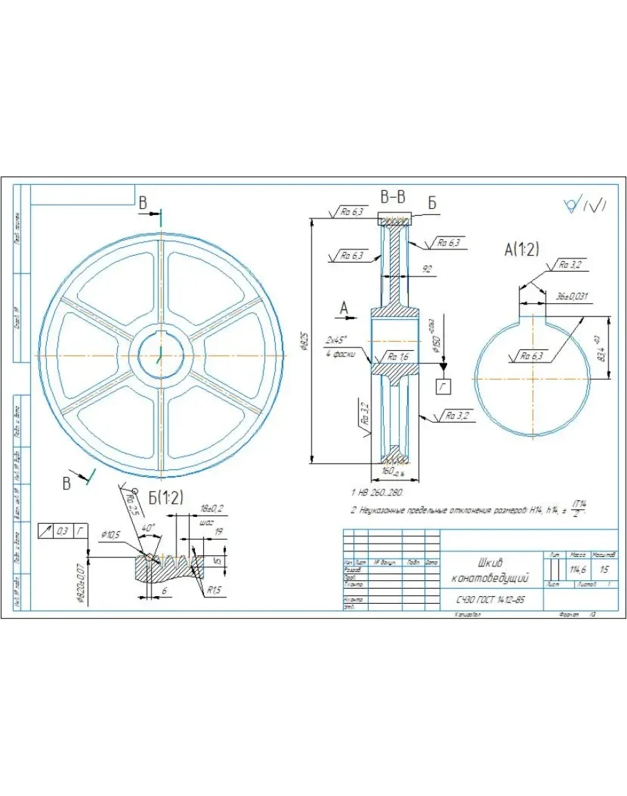 Рабочий чертеж детали шкив канатоведущий в компасе