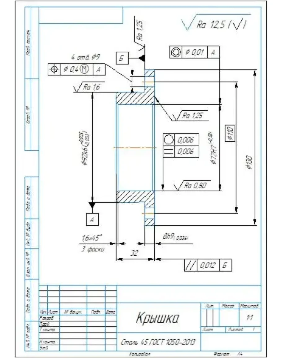Рабочий чертеж детали "Крышка сквозная" в программе Компас 3D