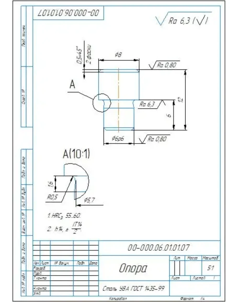 Рабочий чертеж детали опора 00-000.06.01.01.07 в компасе