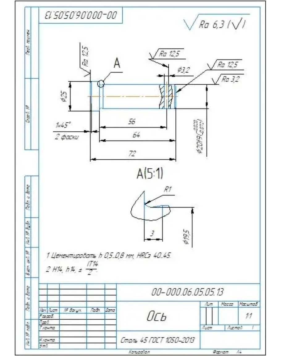 Рабочий чертеж детали ось 00-000.06.05.05.13 в компасе