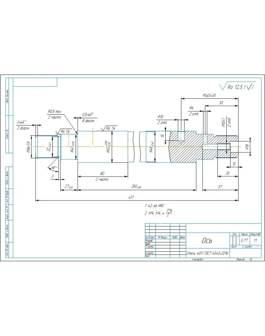 Рабочий чертеж детали "Ось", выполненный в программе компас