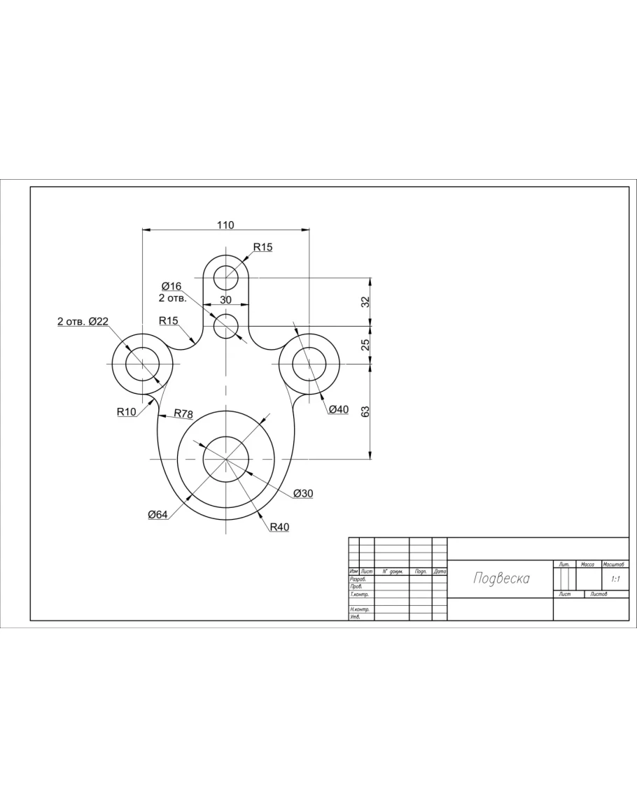 Чертеж детали подвеска по теме сопряжения