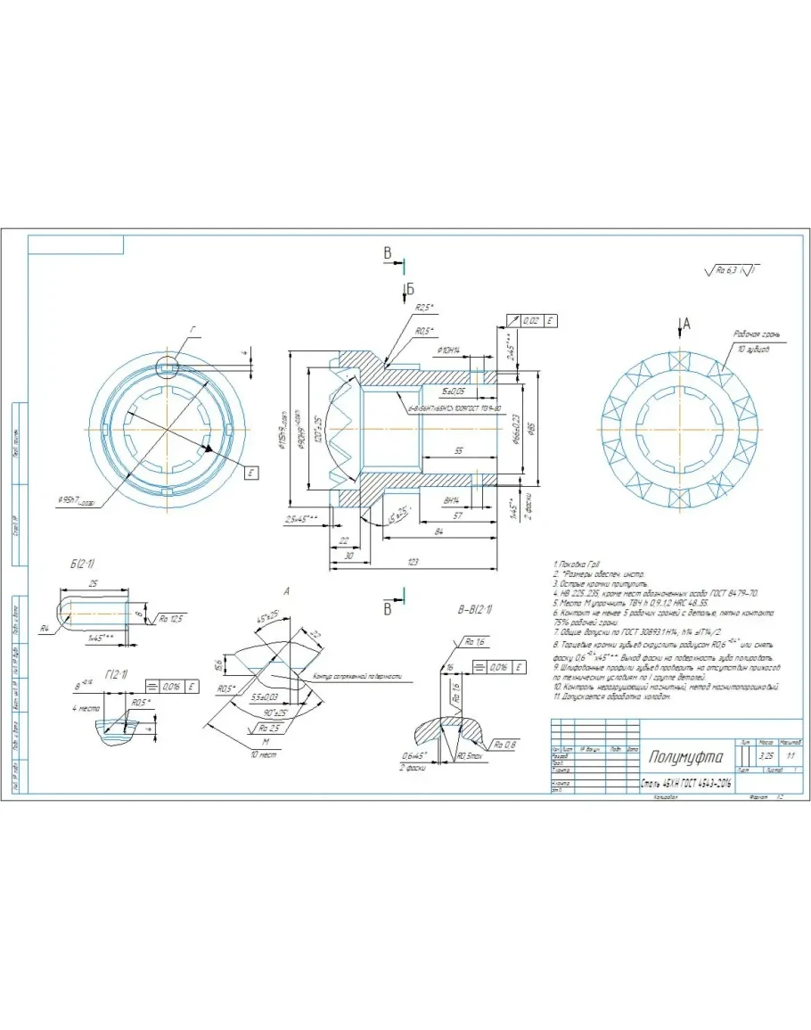 Чертеж детали полумуфта в программе Компас 3D