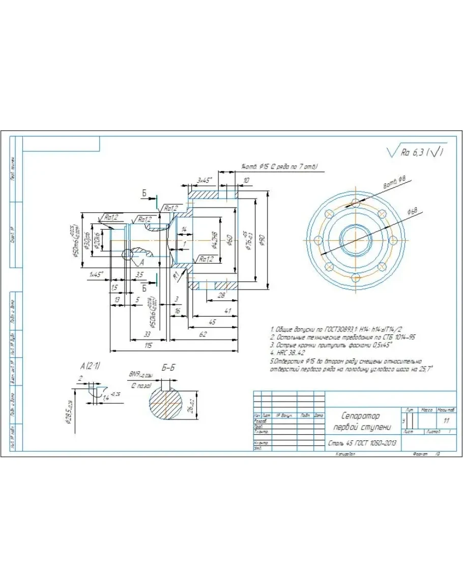 Рабочий чертеж детали сепаратор первой ступени в компасе