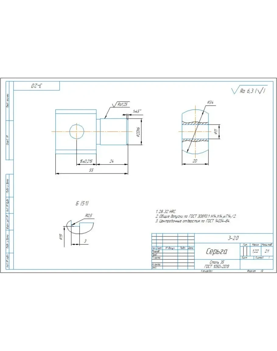 Рабочий чертеж детали серьга 3-20 в программе компас