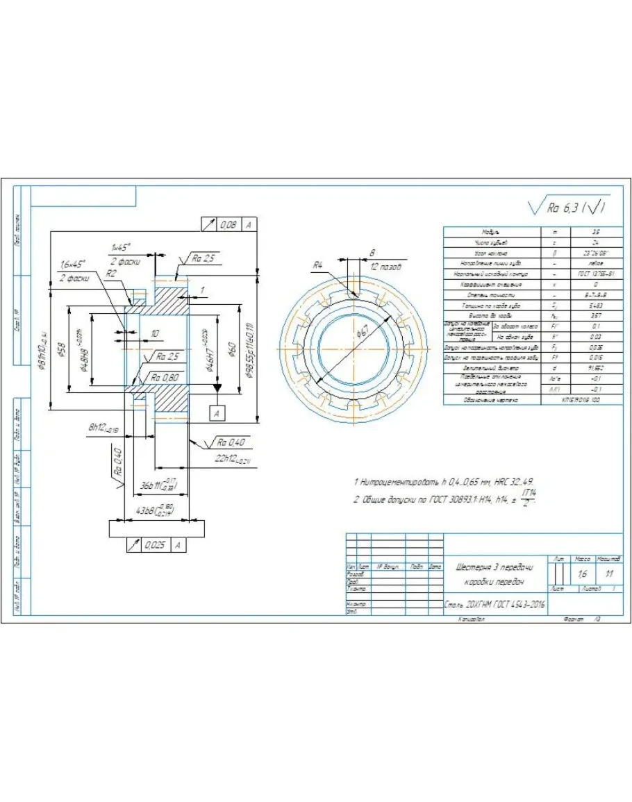 Чертеж детали шестерня 3 передачи коробки передач
