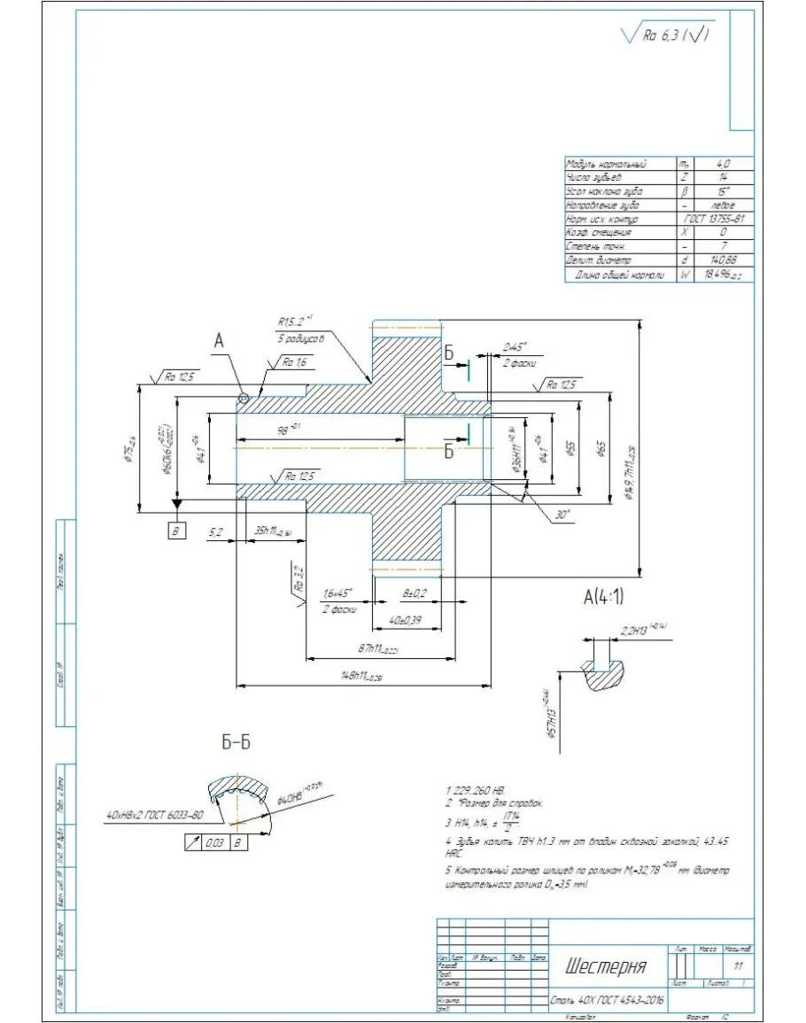 Рабочий чертеж детали шестерня цилиндрическая в компасе