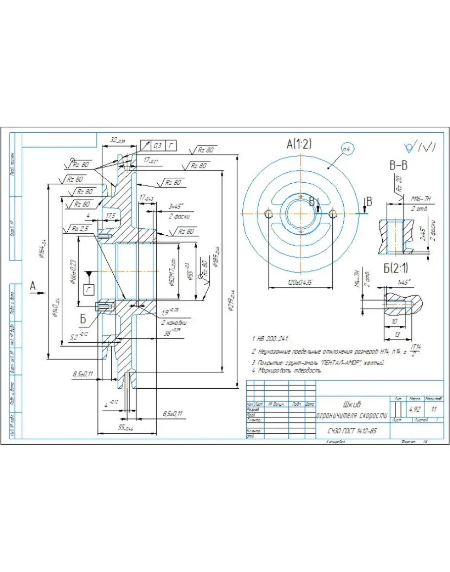 Рабочий чертеж детали шкив ограничителя скорости в компасе