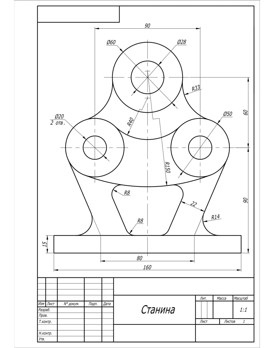 Чертеж детали "Станина" по теме сопряжения в AutoCAD