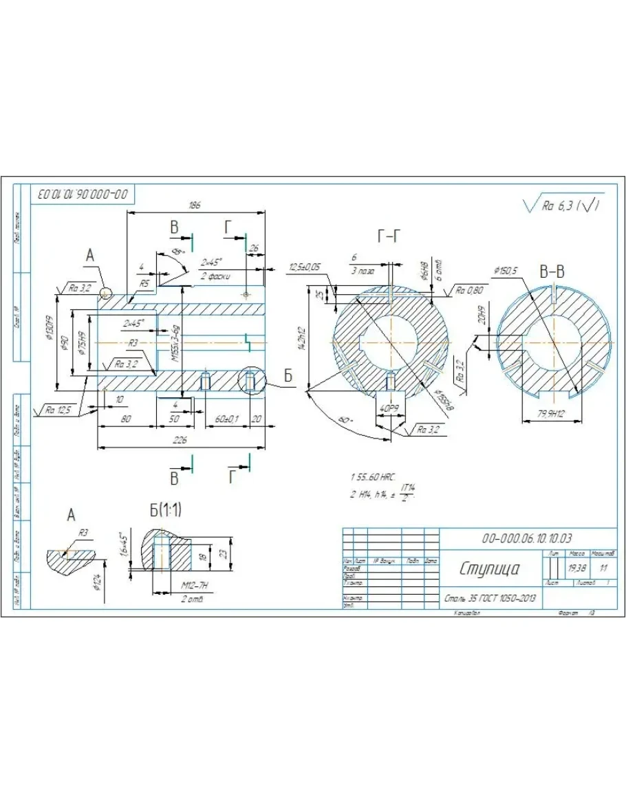 Рабочий чертеж детали ступица 00-000.06.10.10.03 в компасе