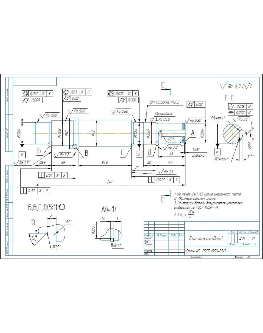 Рабочий чертеж детали вал редуктора тихоходный в компасе