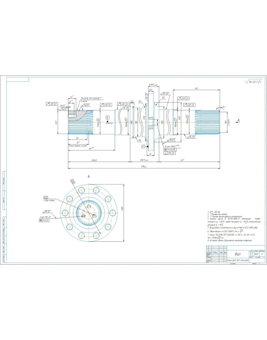 Рабочий чертеж детали вал шлицевой в программе компас