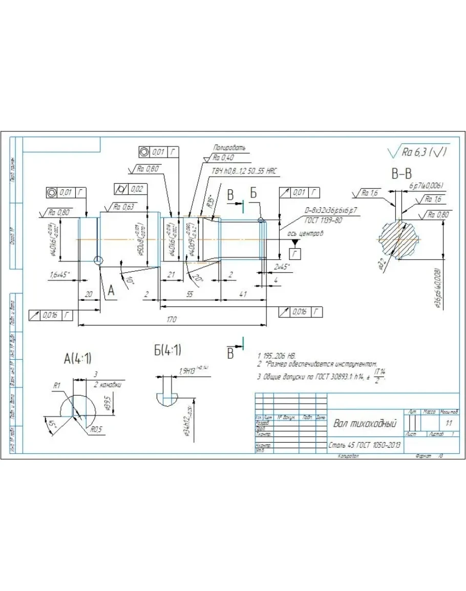 Чертеж детали вал тихоходный шлицевый в компасе d40
