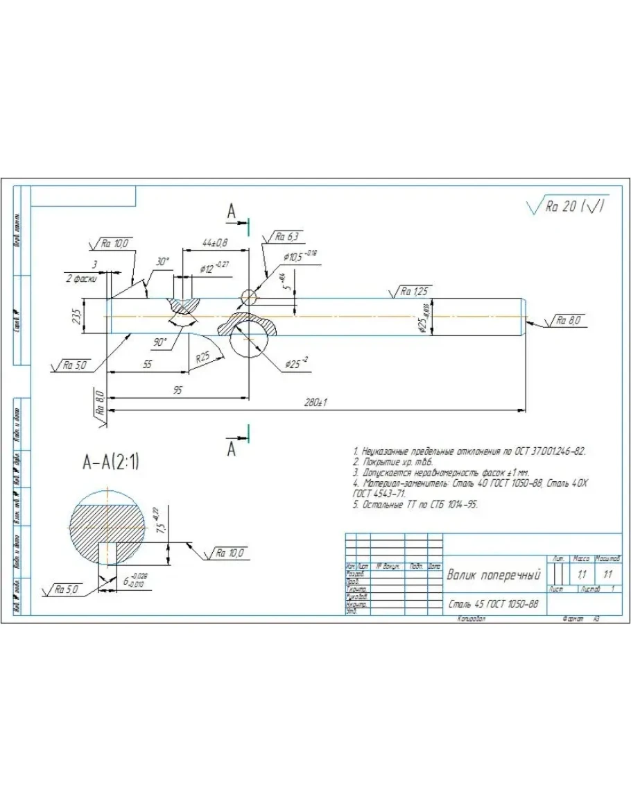 Рабочий чертеж детали валик механизма переключения передач МАЗ