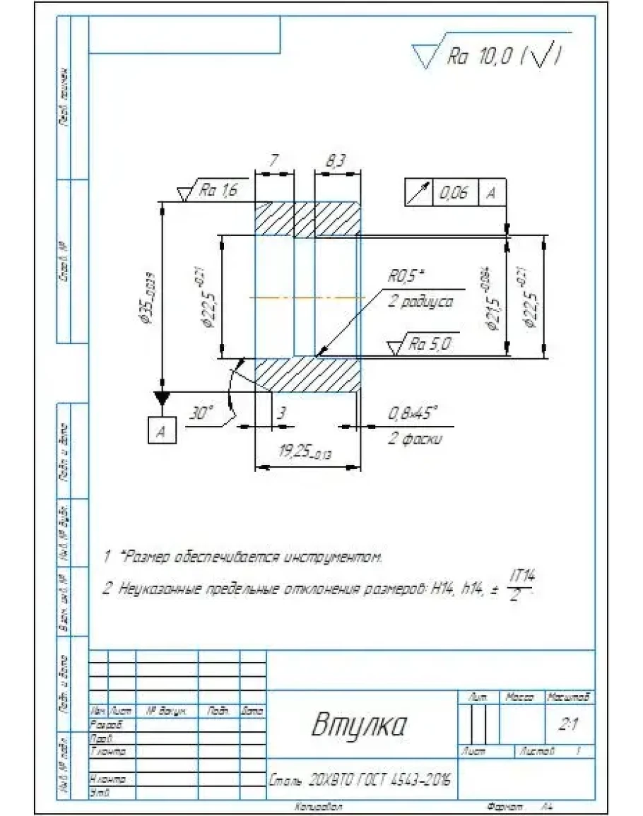 Рабочий чертеж детали втулка 310.3.80.5101 в компасе
