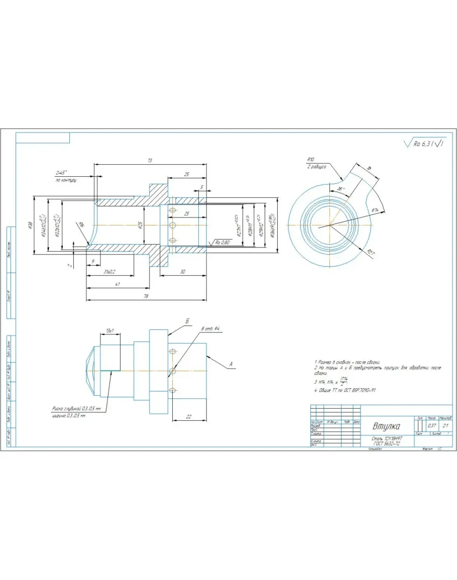 Рабочий чертеж детали втулка в компасе