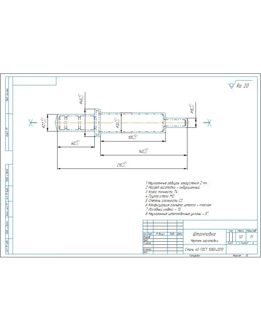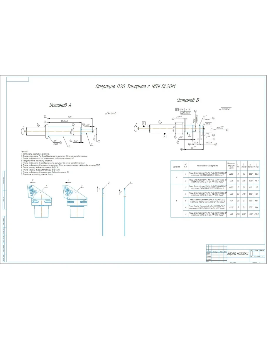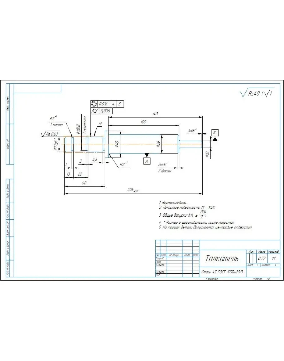 Чертежи детали, заготовки и карта наладки для детали толкатель в программе компас