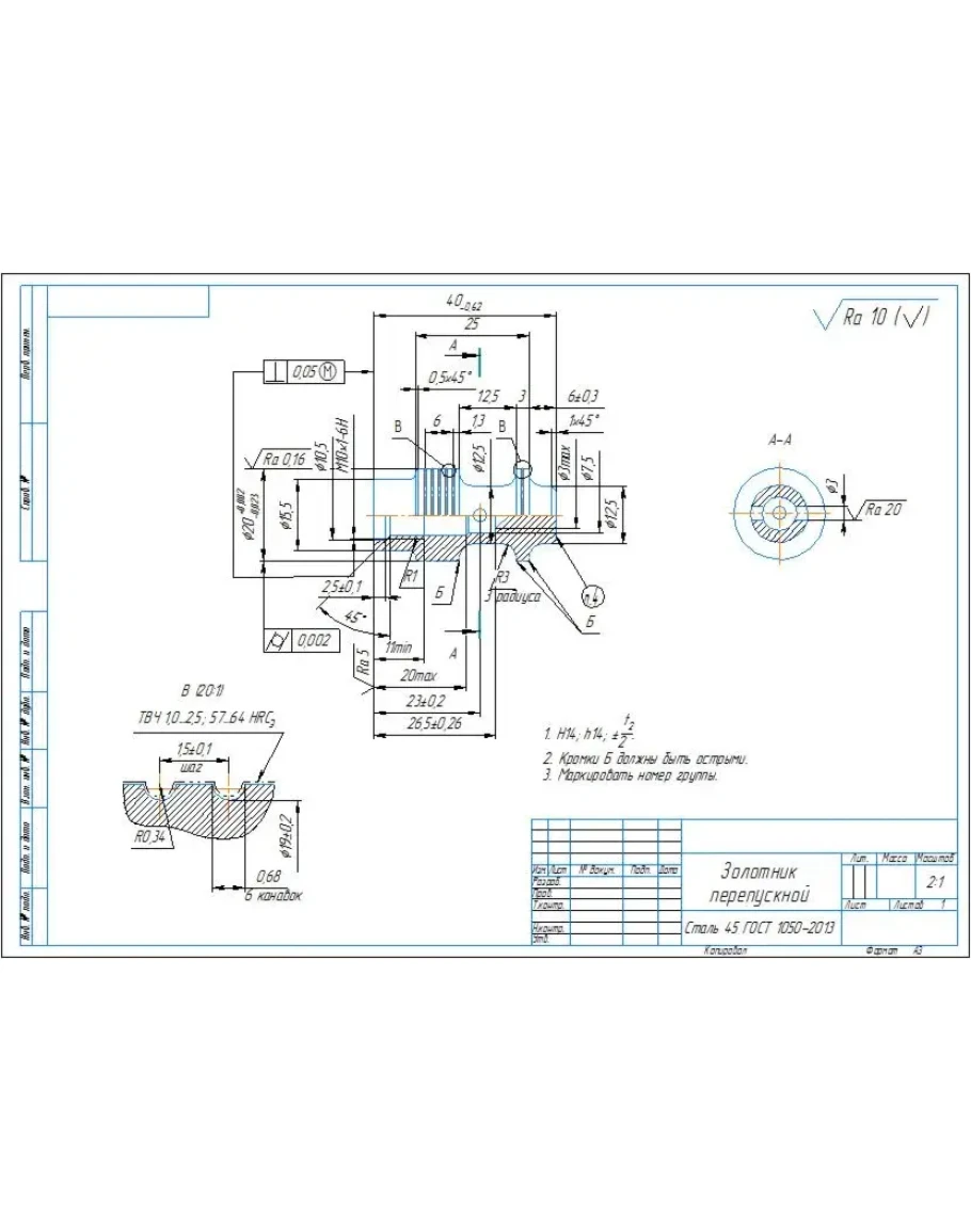Рабочий чертеж детали золотник перепускной гидроусилителя руля в компасе