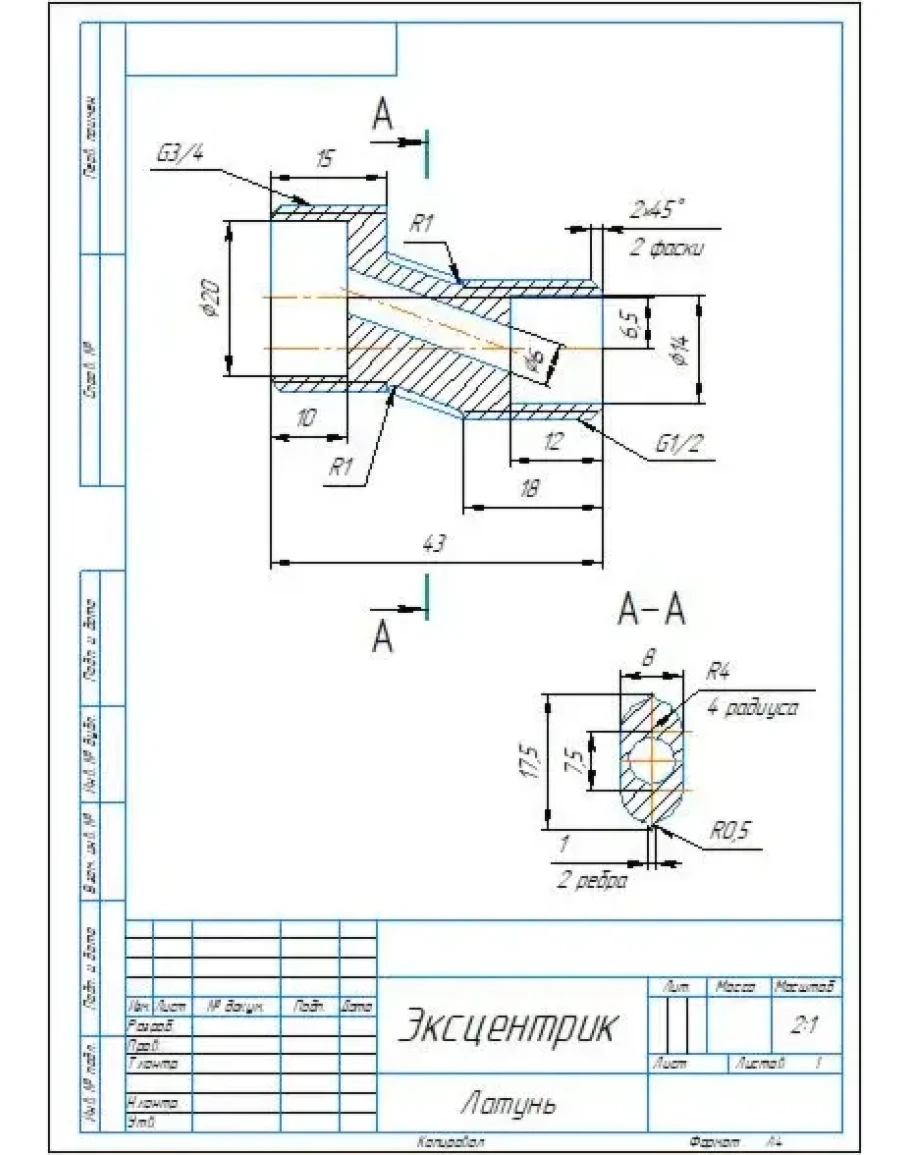 Рабочий чертеж эксцентрика на водопроводный смеситель. Чертеж выполнен в компасе