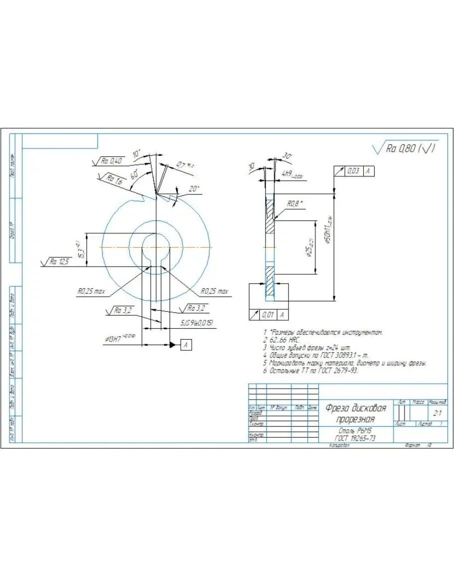Рабочий чертеж фрезы дисковой прорезной диаметром 50 мм в программе Компас 3D