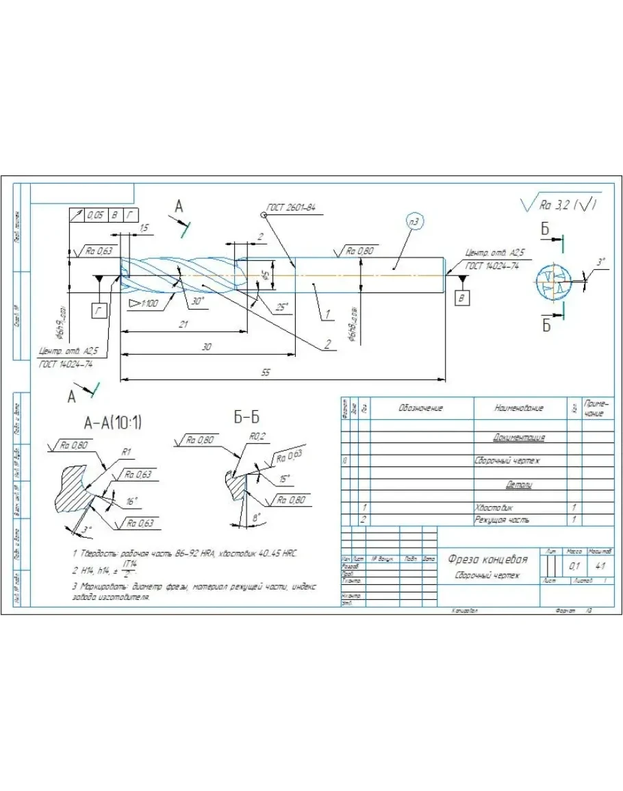 Чертеж концевой фрезы диаметром 6 мм в программе компас