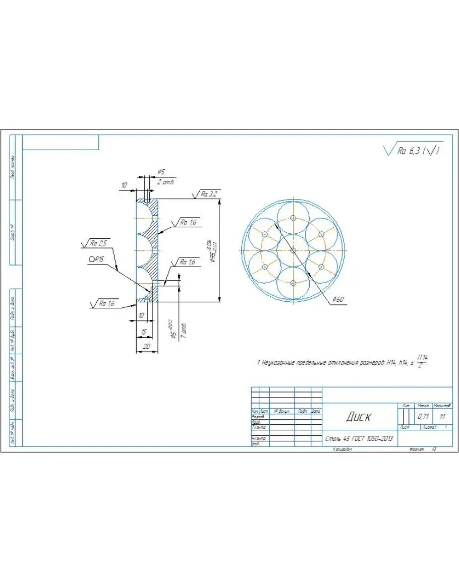 Рабочий чертеж и 3д-модель детали "Диск" в программе компас