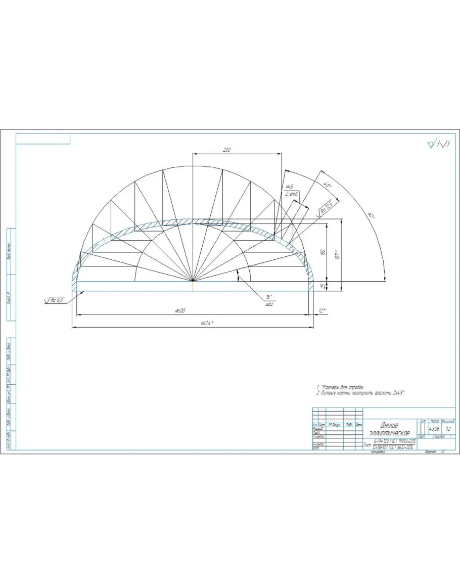 Рабочий чертеж и 3D модель детали днище эллиптическое в программе компас 3D