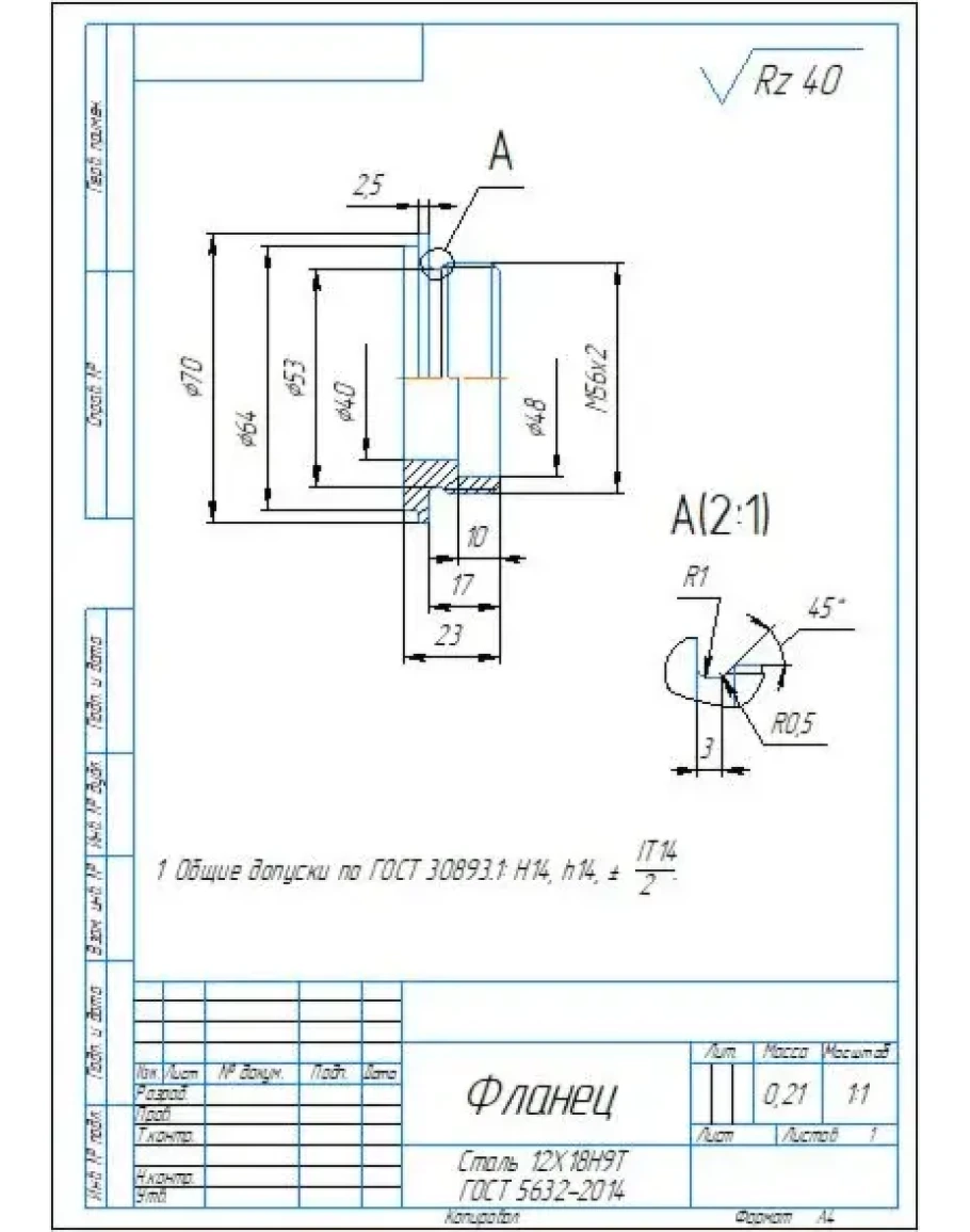 Рабочий чертеж и 3D модель детали "Фланец" в программе Компас 3D