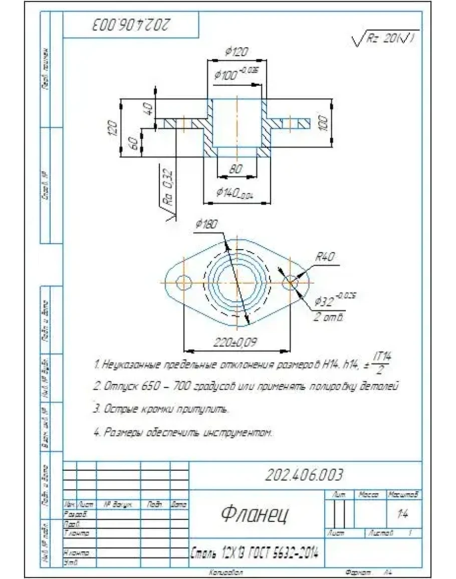 Чертеж и 3D модель детали "Фланец" в программе Компас