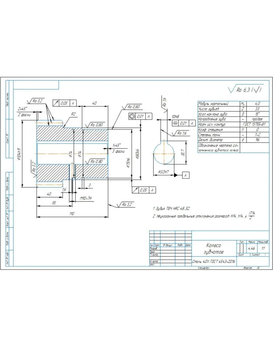 Рабочий чертеж и 3д модель детали колесо зубчатое в компасе