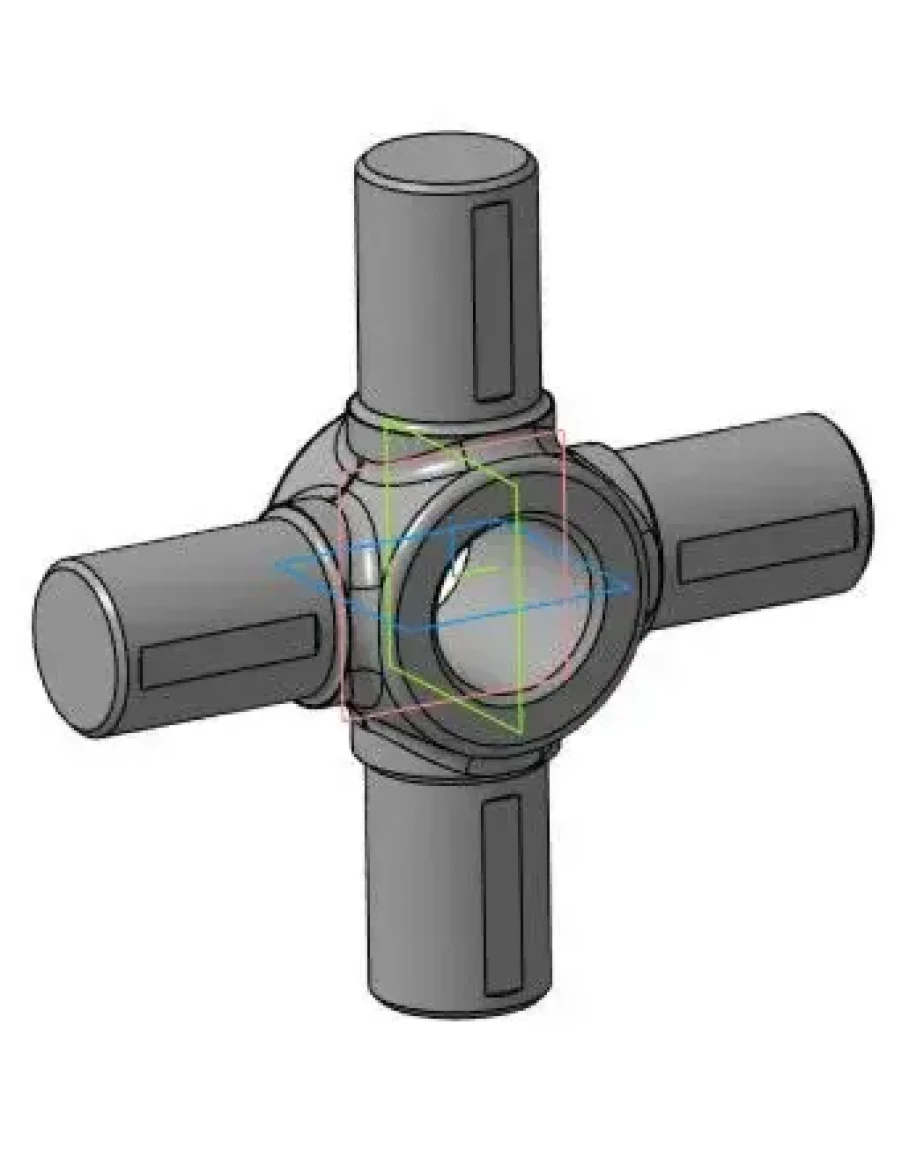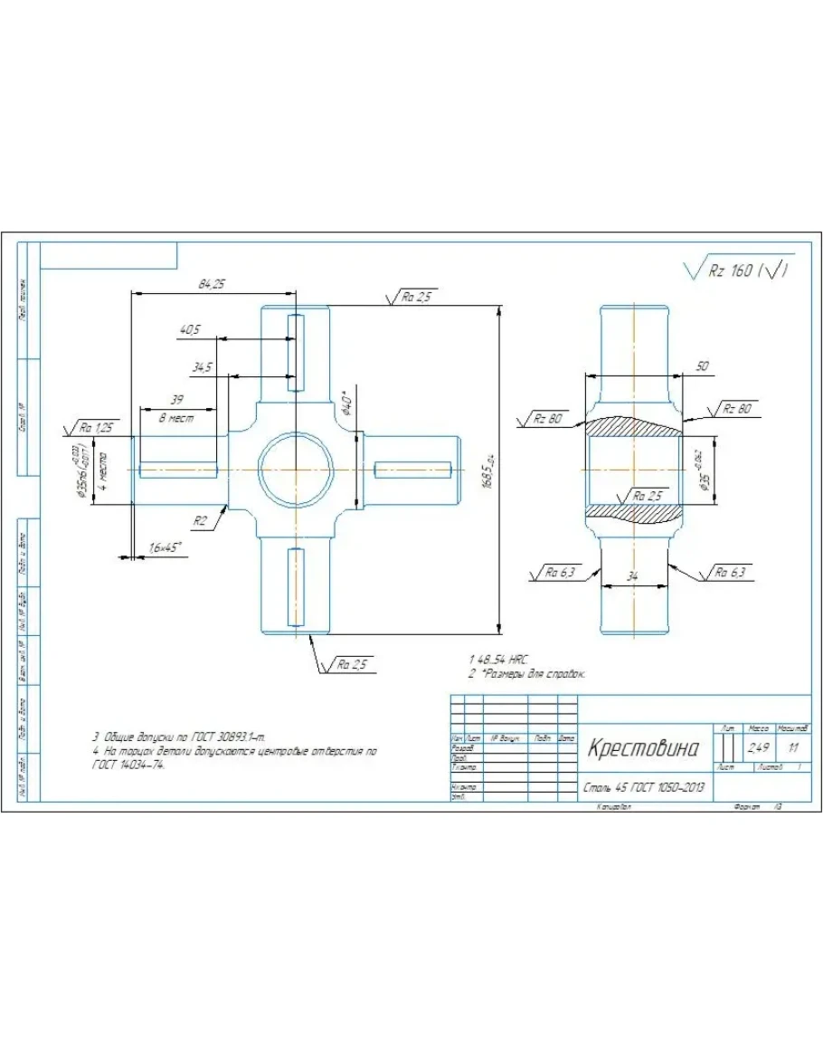 Рабочий чертеж и 3D модель детали крестовина в программе компас
