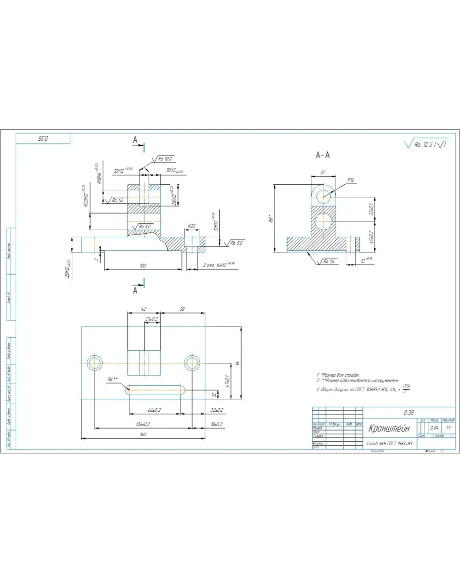 Чертеж и 3D модель детали кронштейн 0.35 в компасе