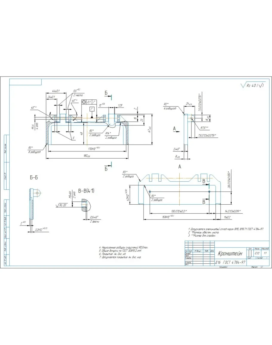 Рабочий чертеж и 3д-модель детали кронштейн в компасе