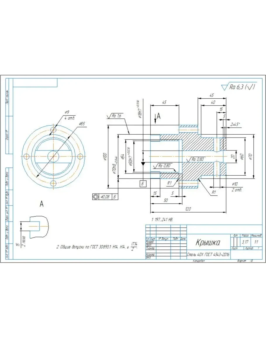 Рабочий чертеж и 3D модель детали крышка в программе Компас 3D