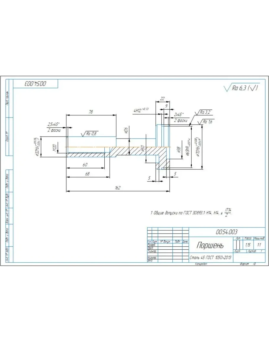 Чертеж и 3D модель детали поршень 00.54.003 в компасе