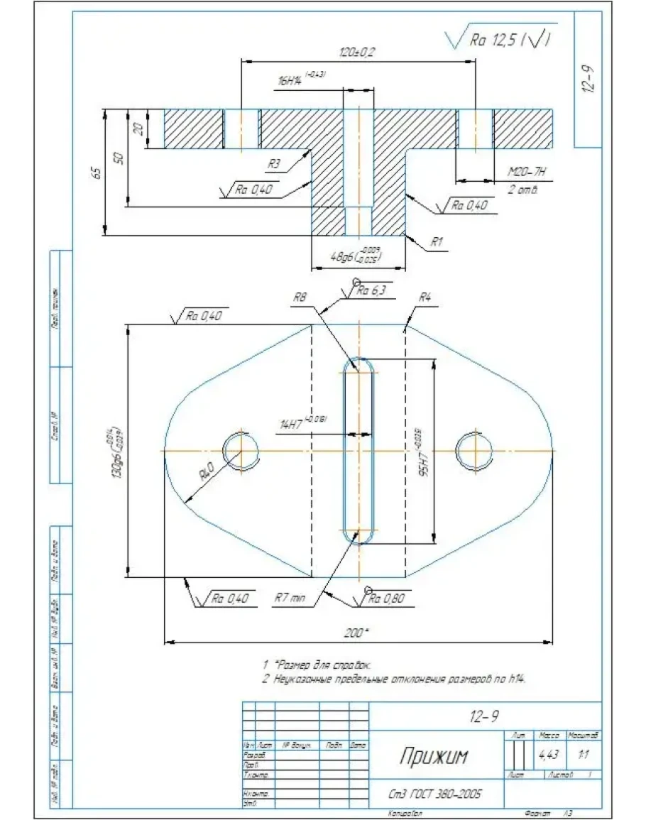 Чертеж и 3д-модель детали прижим 12-9 в компасе