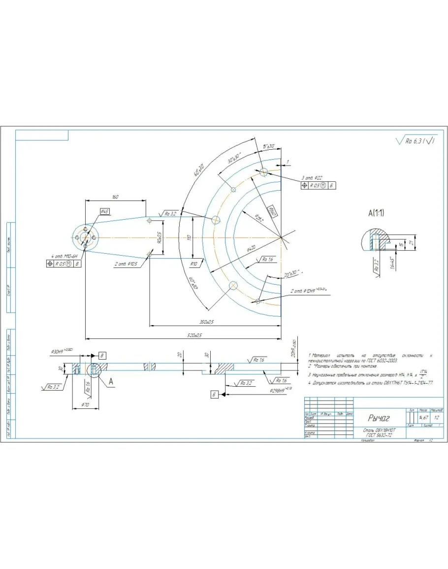 Рабочий чертеж и трехмерная твердотельная модель детали рычаг в программе компас 3D