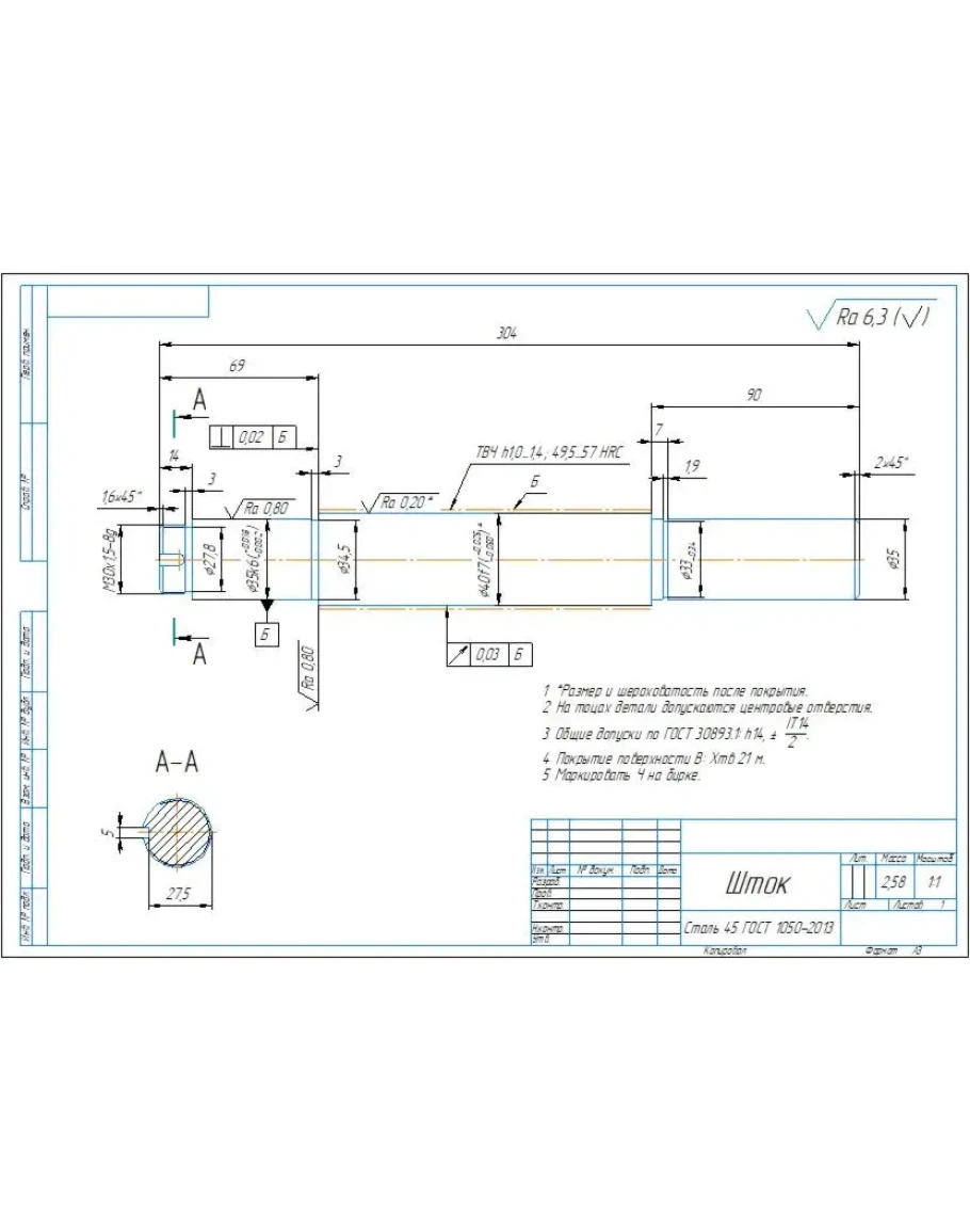 Рабочий чертеж и 3D модель детали "Шток" в программе Компас 3D