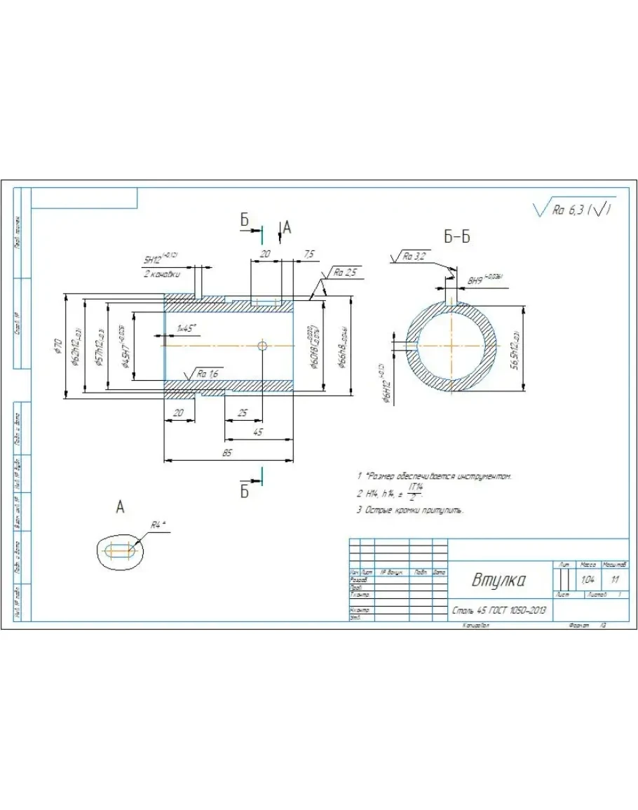 Рабочий чертеж детали втулка и ее 3D модель в программе компас