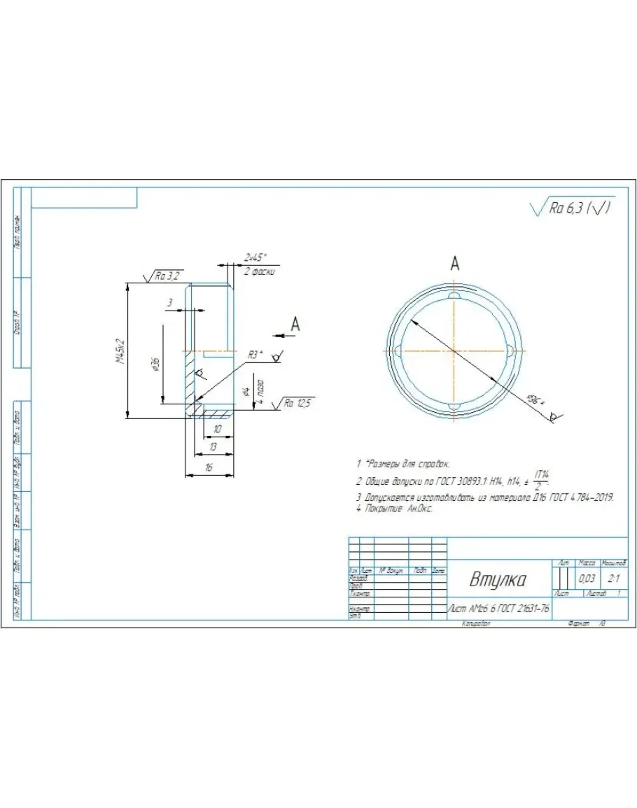 Рабочий чертеж и 3д модель детали втулка в программе компас