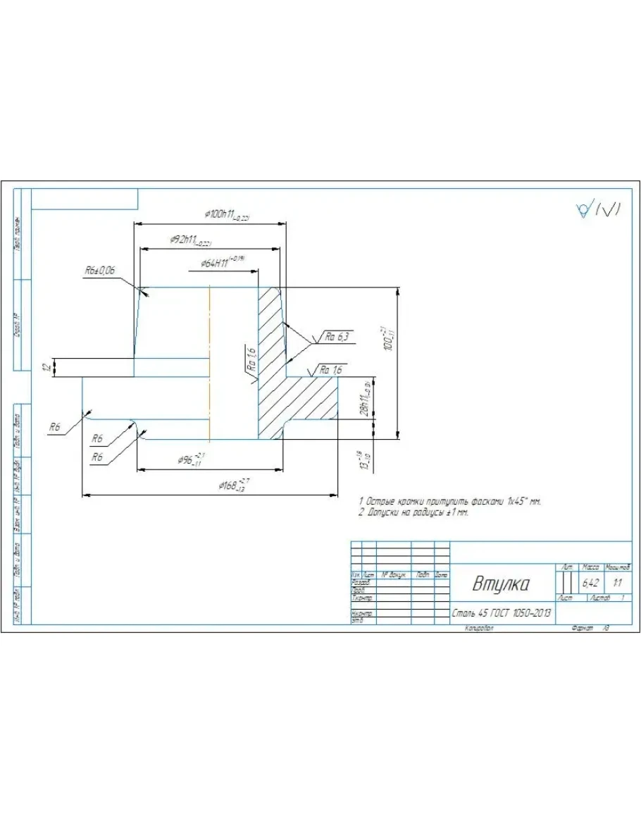 Рабочий чертеж и 3D модель детали втулка в программе Компас 3D