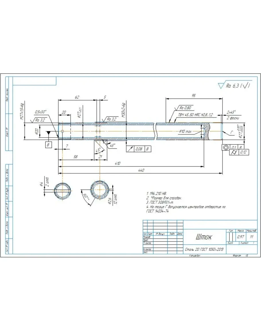 Рабочий чертеж и 3D модель штока амортизатора автомобиля КамАЗ в компасе